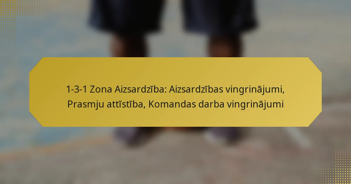 1-3-1 zonas aizsardzība ir stratēģiska basketbola formācija, kas pozicionē vienu spēlētāju augšā, trīs vidū un vienu aizmugurē, radot spēcīgu aizsardzības struktūru. Lai maksimāli palielinātu tās efektivitāti, komandas var veikt mērķtiecīgus treniņus, kas uzlabo pozicionēšanu, komunikāciju un komandas darbu, nodrošinot, ka spēlētāji ir labi sagatavoti pārejai starp aizsardzību un uzbrukumu. Prasmju attīstība šajā aizsardzībā prasa koncentrēšanos uz aizsardzības tehnikām un sadarbības vingrinājumiem, kas veicina izpratni par individuālajām lomām un efektīvu komunikāciju laukumā.